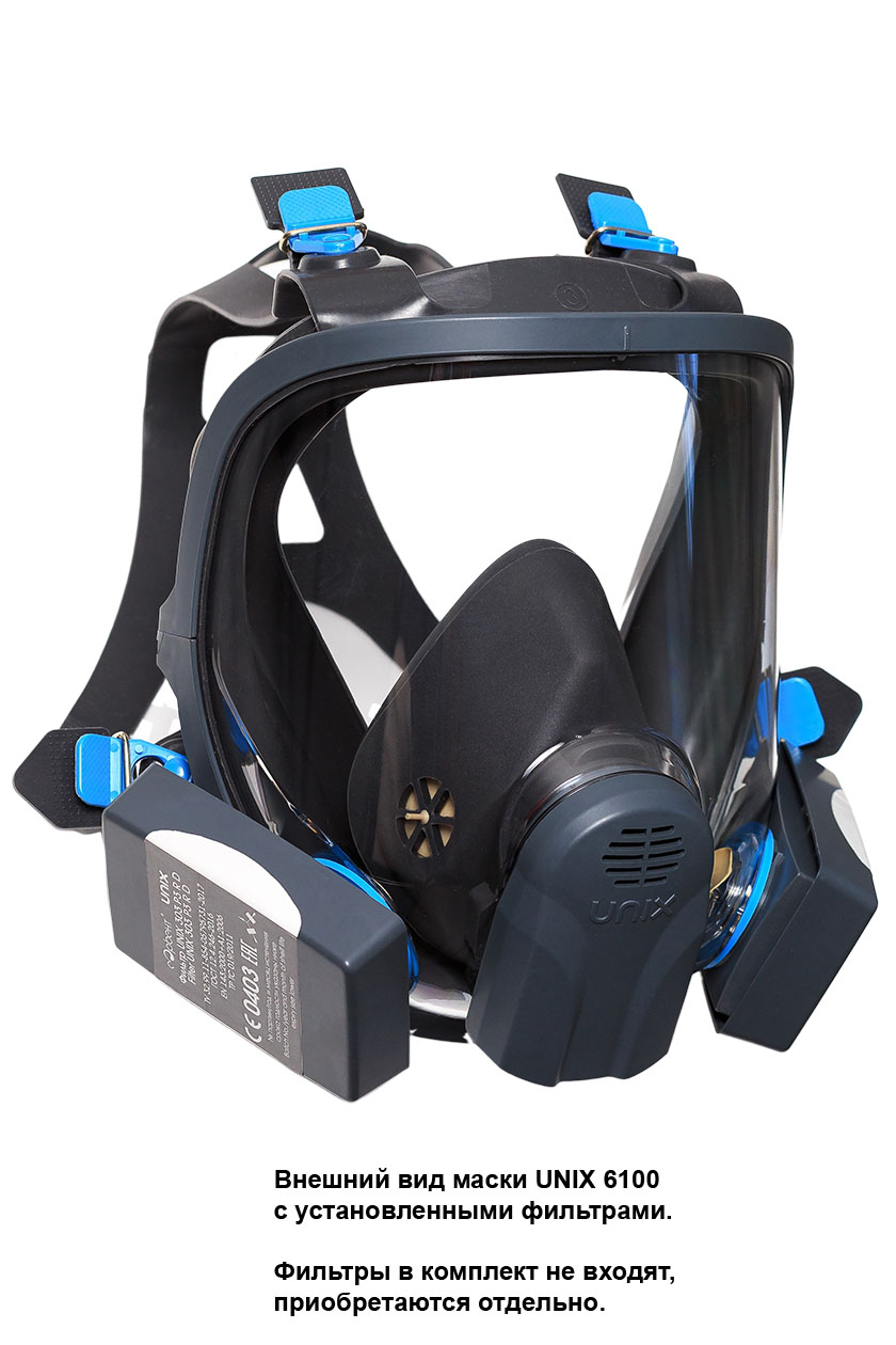 Продажа и поставка оптом полнолицевой маски UNIX 6100 с панорамным стеклом корпусом. Лицевая часть оборудована двумя штыковыми креплениями байонет для быстрого соединения и отстыковки очищающих фильтров. С установленными фильтрами обеспечивает защиту органов дыхания, лица и глаз от воздействия паро- и газообразных вредных веществ.